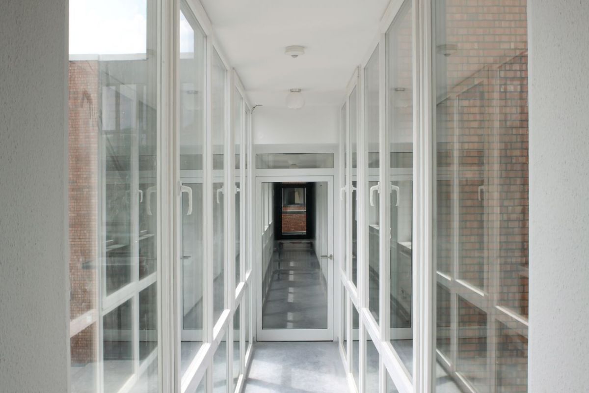 Im Inneren des Gebäudes wurde mit einer einzigen tragenden Wand gearbeitet. Sämtliche Trennwände zwischen den einzelnen Nutzungseinheiten haben keinerlei statische Funktion und ermöglichen jederzeit einen Rückbau, falls sich die Anforderungen der Nutzer ändern sollten.
