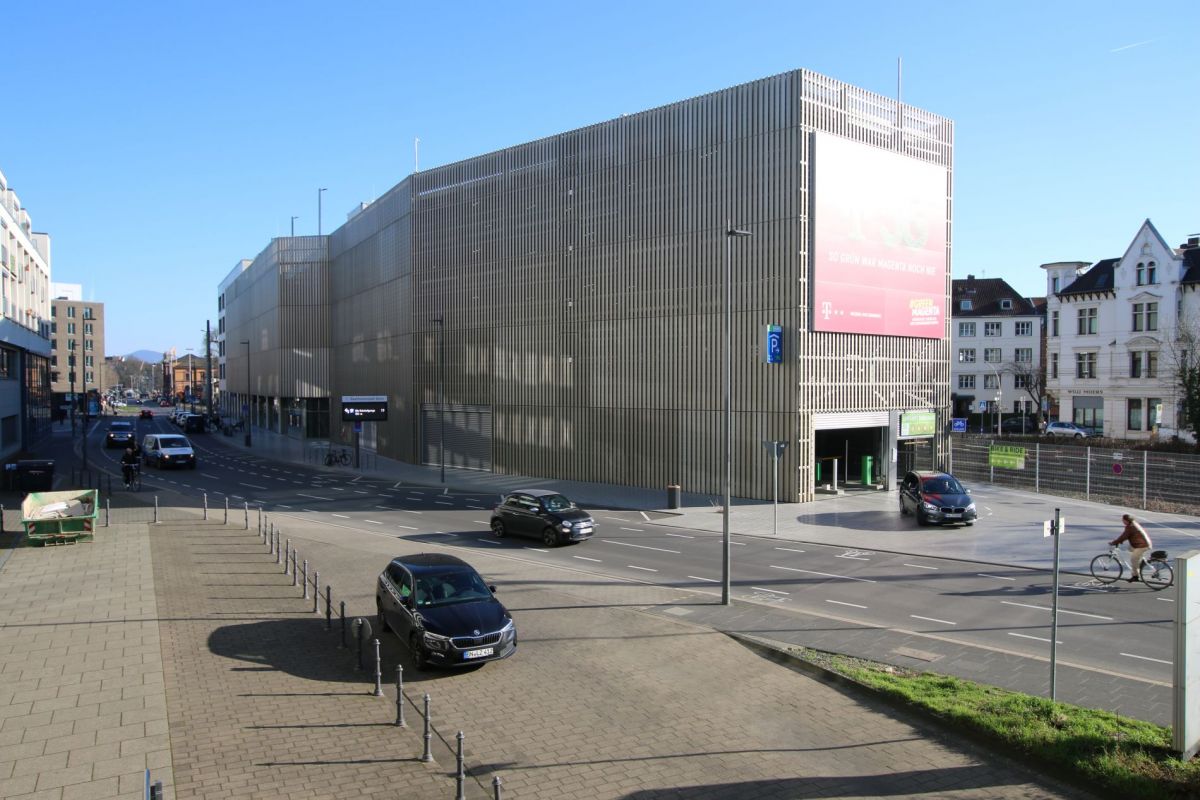 Das Parkhaus schließt sich als Stahlkonstruktion daran an. Die Anzahl an öffentlichen Stellplätzen beträgt im Parkhaus (im Obergeschoss) 258 sowie 220 Fahrradstellplätze und in der objekteigenen Tiefgarage 88.