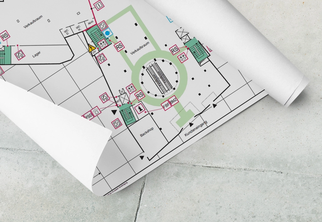 AM Ingenieure verfügt über die Fachkunde zur Erstellung von Flucht- und Rettungsplänen, Feuerwehrplänen, Laufkarten sowie Bestuhlungs- und Zimmerfluchtplänen. Das spart weitere Schnittstellen und sichert eine normgerechte Umsetzung gemäß aktueller Vorschriften. Ob Neubau, Umbau oder Bestandsgebäude – wir schaffen eine einheitliche Datenbasis für Ihre Sicherheitsgrafiken und reduzieren so Fehlerquellen – wenn gewünscht, sogar integriert ins BIM-Modell. Das sorgt nicht nur für Klarheit im Ernstfall, sondern spart Ihnen Zeit, Kosten und Abstimmungsaufwand.